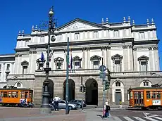 O Teatro Nacional de São Carlos [12],de José Costa e Silva, fica em Lisboa. Como a ópera da cidade não sobreviveu ao terramoto, constrói-se na zona do Chiado um elegante teatro. Inspirado no Teatro alla Scalla, em Milão, o exterior austero, possui três corpos simulados, com aparelho rusticado formando um embasamento, arcada suportando uma larga varanda, meias colunas no primeiro piso e um terceiro piso no lugar do frontão. No remate existe um escudo de armas e urnas. Sóbrio no exterior, mas de grande beleza no interior, associando talha e pintura num conjunto muito elegante.