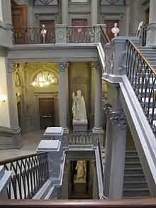 O verdadeiro Neoclassicismo chegou a Roma com Giovanni Battista Visconti,[14][16] Comissário de Museus e Superintendente de Antiguidades, sucedeu Winckelmann após 1768. Visconti promoveu uma série de transformações significativas nos Museus Vaticanos, que começaram com a alteração do pátio octogonal por Alessandro Dori, mais tarde substituído por Michelangelo Simonetti. Depois de 1775, sob o papado do papa Pio VI, o trabalho recomeçou com maior vigor. Num projeto do próprio Simonetti e Pietro Camporese, foram adicionadas imponentes salas de museu, como a de Musa, a sala de cruz grega e a escadaria de acesso. Entre 1817 e 1822, Raffaele Stern criou o chamado Braccio Nuovo. Em conjunto, esses ambientes constituem uma sequência de diferentes espaços, todos caracterizados por uma insolita exatidão arqueológica, que, no entanto, será dificilmente aplicável a obras menores.[14]