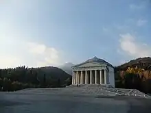 A ocupação francesa de Roma coincidiu com a afirmação de um estilo neoclássico seguro e fácil de imitar. Giuseppe Valadier (1762-1839), que trabalhou extensivamente nos Estados Pontifícios e, em particular, em Urbino, onde restaurara o Duomo no estilo neopalladiano,[17] tornou-se a principal figura de referência. A dupla condição de bom católico e de ser origem francesa, justificar o sucesso do arquiteto, pelo menos no momento inicial da sua carreira. Valadier esteve envolvido na restauração do Coliseu, do Arco de Tito, do Panteão e da Ponte Milvio, dedicando-se também aos projetos de Villa Torlonia, Caffè del Pincio, da fachada de San Rocco e da sistematização da Piazza del Popolo. considerada uma obra-prima do neoclassicismo italiano do ponto de vista urbanístico.[18]
