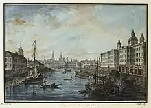 Em 1783, Quarenghi projetou o Palácio do Banco do Estado no Canal Griboyedov, dada a importância do edifício, o autor dá ao monumento uma aparência majestosa. Diferente foi a atitude do arquiteto na mais sóbria Academia das Ciências (1783-1789) onde o exterior, sem adornos, é marcado por um pesado pórtico em ordem jônica e no interior as elegantes proporções e a solenidade dos espaços lembram o gosto da antiga Roma.[17] Naqueles anos Quarenghi também estava ocupado, após as intervenções do arquiteto russo Karl Blank e Francesco Camporesi, para completar o Palácio de Catarina em Moscou (1790–1797). Quarenghi havia construído inúmeros palácios e trazido à moda um estilo monumental original, de inspiração palladiana, que foi uma referência para muitos arquitetos que trabalharam na Rússia, entre eles Ivan Starov que, para o príncipe Potemkin, criou o Palácio Tauride. O edifício, constituído por um edifício principal e duas alas contíguas complementadas por pavilhões laterais, em perfeita aderência ao tipo de villa palladiana, serviu de modelo para inúmeras mansões espalhadas pelo Império Russo. A arquitetura de Nikolay Lvov representou a segunda geração "estrita" do neoclassicismo estilisticamente próxima a Giacomo Quarenghi.[18] O arquiteto do polímata, entre outras coisas, traduziu para o russo o tratado I quattro libri dell'architettura de Palladio.
