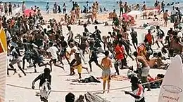 A 10 de junho de 2005, uma sexta-feira, comemorava-se o Dia de Portugal, de Camões e das Comunidades Portuguesas, sendo por isso dia feriado, o primeiro de um fim de semana prolongado, marcando também o início das férias de Verão para muitos jovens. Estando um dia de calor, o areal da praia de Carcavelos encontrava-se particularmente cheio.[1] Testemunhas oculares relataram a presença de um grande número de banhistas negros, separados dos banhistas brancos, com alguma tensão latente, mas sem qualquer incidente fora do normal.[2] Ao fim da manhã teriam ocorrido alguns desacatos na praia. Perto do meio-dia a Polícia de Segurança Pública (PSP) foi alertada, pedindo reforços duas horas depois, que chegariam às 14h20.[1]