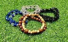 A palavra miçanga vem do idioma xhosa “masanga”, que significa “contas de vidros miúdas”. Atualmente as miçangas são utilizadas na confecção de objetos artesanais como colares, pulseiras, tornozeleiras e brincos, utilizados como acessórios de beleza.[27]