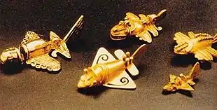 Os artefatos quimbaya são várias dúzias de objetos de ouro, encontrados na Colômbia, feitos pela cultura quimbaya, datados por volta de 1000 dC, alguns dos quais são interpretados por teóricos dos antigos astronautas como representações de aviões modernos e, portanto, sejam artefatos fora do lugar. O conjunto das figuras, medindo de 5 a 7,5 cm cada, são descritas na arqueologia tradicional como retratações de pássaros, lagartos, anfíbios, peixes e insetos comuns naquela região e período, alguns deles altamente estilizados, como os presentes do Museu do Ouro, em Bogotá.