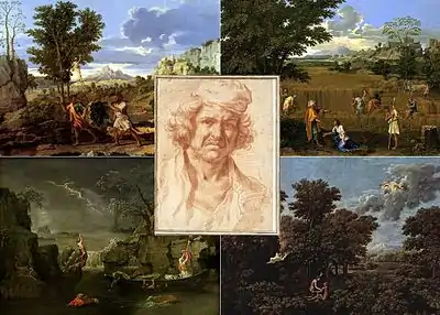 Nicolas Poussin é considerado por muitos historiadores de arte como uma das figuras mais influentes na pintura de paisagem francesa.[15] Nas suas pinturas ele procurou uma harmonia entre os elementos verticais e horizontais, às vezes recorrendo a cálculos matemáticos, como a regra de ouro. Na pintura de paisagem, na qual os elementos são principalmente horizontais, ele inseriu a arquitetura clássica para fazer o ângulo reto pitagórico tão essencial no seu método que foi muito estudado posteriormente pelos comentadores e artistas. Quando as Estações de Poussin foram exibidas pela primeira vez, foram imediatamente discutidas por académicos , conhecedores e artistas franceses, incluindo Charles Le Brun, Sébastien Bourdon, Loménie de Brienne e Michel Passart, um patrono tanto de Claude Lorrain como de Poussin.