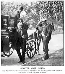 Às 2h15min do sábado, 14 de setembro de 1901, o presidente William McKinley faleceu.[75] No momento da morte, Roosevelt estava em sua viagem de volta para Buffalo, cruzando as montanhas de carruagem até a estação de trem mais próxima, onde um trem especial estava à sua espera. Ao amanhecer, quando ele finalmente chegou na estação, Roosevelt soube da morte do presidente.[74]