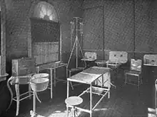 A ambulância que levou McKinley chegou ao hospital da Exposição às 16h25min. O local possuía uma sala de operações apesar de geralmente lidar apenas com atendimentos mais simples. Nenhum profissional médico qualificado estava no hospital no momento dos tiros, apenas enfermeiras e internos.[49] O melhor cirurgião da cidade (e diretor médico da feira), Dr. Roswell Park, estava em Niagara Falls realizando uma delicada operação de pescoço. Quando interrompido no dia 6 de setembro e questionado se poderia ir a Buffalo, ele respondeu que não podia deixar aquela cirurgia nem mesmo para atender o presidente dos Estados Unidos. Ele então foi informado de quem havia sido baleado. Duas semanas depois, Park salvaria a vida de uma mulher que sofreu ferimentos quase idênticos aos de McKinley.[50][51] O primeiro médico a chegar no local foi o Dr. Herman Mynter, a quem o presidente havia conhecido brevemente no dia anterior; mesmo ferido, McKinley (que tinha uma boa memória para rostos) brincou dizendo que quando conheceu Mynter não esperava precisar de seus serviços profissionais.[52] Enquanto estava deitado na mesa de operação, o presidente falou sobre Czolgosz, "Pobre rapaz, ele não sabia o que estava fazendo. Ele não tinha como saber".[53] Com Park indisponível e o Sol, a principal fonte de luz da sala, se pondo, foi decidido operar o presidente para tentar remover a bala restante.[51] Mynter deu a McKinley uma injeção de morfina e estricnina para diminuir a dor; o Dr. Matthew D. Mann (um famoso ginecologista sem experiência alguma em ferimentos abdominais) utilizou éter etílico para sedar o presidente enquanto ele murmurava o Pai Nosso.[52]