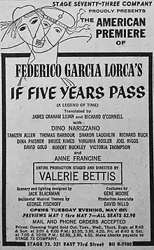 Assim que passarem cinco anos: lenda do tempo é uma peça do poeta e dramaturgo espanhol Federico Garcia Lorca. Escrita em 1931, é uma paródia dos melodramas familiares com cenas sem ligação aparente, permeadas por toques surrealistas. Em vários momentos, a trama se quebra e os diálogos não têm concatenação lógica.