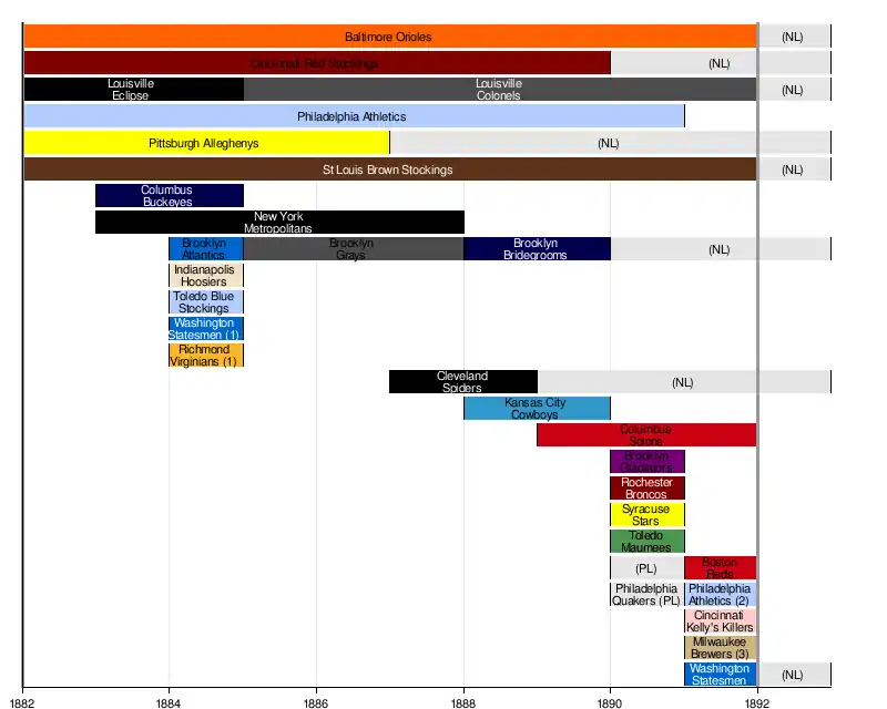- Na temporada de 1891, o Philadelphia Athletics foi substituído pelo Philadelphia Quakers da Player's League.