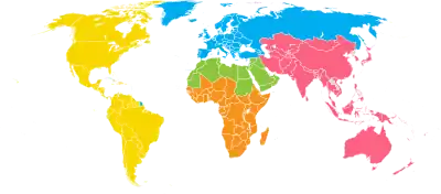 A Associação Mundial de Guias e Bandeirantes tem cinco regiões: Europa, Árabe, África, Ásia e Hemisfério Ocidental.