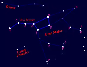 Um dos asterismos mais conhecidos é o Grande Carro, também chamado de Caçarola ou Carro de Davi. Ele é composto pelas sete estrelas mais brilhantes de Ursa Major,[7] onde elas esboçam o traseiro da ursa e a cauda exagerada. Com a sua longa cauda, a Ursa Minor se parece pouco com um urso e é também conhecida pelo pseudônimo de Pequeno Carro.[8]
