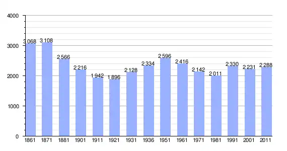 | Variação demográfica do município entre 1861 e 2011[3] |