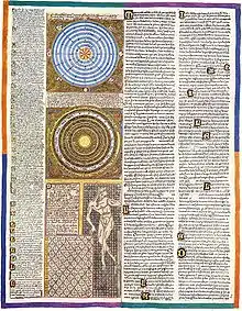 Ao lado dos calendários encontram-se dados astronómicos baseados no modelo geocêntrico de Ptolemeu, que não deixam de ser um estudo da cosmografia científica da época. A humanidade sobre a Terra, encontra-se rodeada pelos três elementos básicos, o ar, a água e o fogo. Nos sucessivos anéis azuis podem-se encontrar a Lua, Mercúrio, Vénus, o Sol, Marte, Júpiter e Saturno, e o firmamento com dezoito estrelas. O seguinte círculo contém alegorias clássicas destes astros: o Sol é o rei, Vénus é uma dama, etc, terminando com um Marte guerreiro.