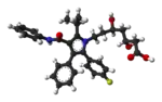 Atorvastatina (Lipitor, Pfizer) é um fármaco membro da classe de drogas conhecidas como estatinas, usadas para abaixar os níveis de colesterol no sangue. Ele também estabiliza a placa ateromatosa evitando AVCs.