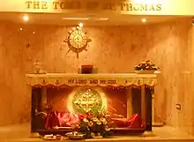 Segundo Bardesanes, Tomé foi martirizado na Índia ocidental, no Vale do Indo, atualmente no Paquistão[3]. Durante o reinado de Vasudeva I, os ossos de São Tomé teriam sido transferidos para Edessa[4]. Porém, a tradição reputa o local da morte do apóstolo como tendo ocorrido na antiga cidade de Madras (atual Chennai), na Índia, onde existe ainda hoje um túmulo dele.