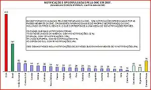 O Brasil tem adotado uma postura pró-ativa a respeito de Medidas Sanitárias e Fitossanitárias. O número de notificações sobre tais regulamentos, emitidos pelo Ministério da Agricultura, Pecuária e Abastecimento - MAPA), tem crescido significativamente, o que o posiciona como o segundo Membro que mais apresenta notificações SPS. (Ver gráfico)