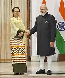 Em Myanmar, o presidente é chefe de Estado e de Governo, tendo o cargo de primeiro-ministro sido abolido em março de 2011. Aung San Suu Kyi não poderia assumir a presidência em razão de a lei impedir quem tem filhos estrangeiros de chegar à chefia do Estado.[36]
