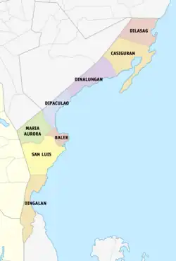 - Municipality Population Data. Local Water Utilities Administration Research Division, ed. «Província de Aurora» (em inglês). Consultado em 17 de dezembro de 2016