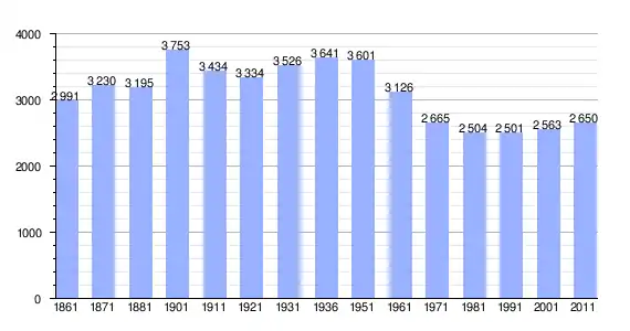 | Variação demográfica do município entre 1861 e 2011[3] |