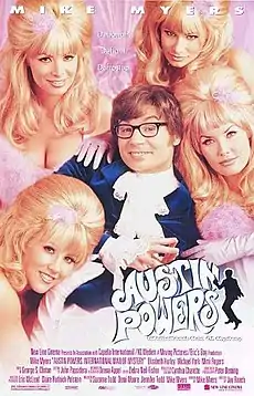 Austin Powers: International Man of Mystery é um filme estadunidense de 1997, do gênero comédia, dirigido por Jay Roach, com roteiro de Mike Myers, que também estrela a série no papel-título e Dr. Evil, arqui-inimigo de Powers.[8][9] Os papéis de apoio incluem Elizabeth Hurley, Robert Wagner, Seth Green e Michael York. Primeiro filme da série de filmes Austin Powers, é uma paródia dos primeiros filmes de James Bond (particularmente aqueles estrelados por Sean Connery) bem como de outros filmes de espionagem e demais elementos da cultura popular da década de 1960.[10]