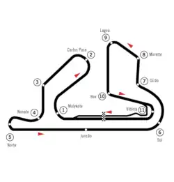 No circuito usado na Fórmula 1, possuía 11 curvas, distribuídas entre setores técnicos e rápidos.