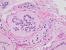 Os lisossomos são organelas ligadas à membrana que normalmente contêm um amplo espectro de enzimas capazes de desconstrução hidrolítica de polissacarídeos, proteínas, ácidos nucleicos, lipídios, ésteres de acil fosfóricos e sulfatos. Este processo requer compartimentalização e segregação de enzimas e substratos através de uma única membrana intracelular que previne a destruição injustificada de outros componentes intracelulares. Em condições normais, a maquinaria molecular da célula é ainda mais protegida da atividade enzimática lisossomal pela regulação do pH citosólico. A atividade das hidrolases lisossômicas é ideal em um pH moderadamente ácido de 5, que é significativamente mais ácido do que o pH médio mais básico de 7,2 no citosol circundante.[1] No entanto, o acúmulo de produtos da glicólise diminui o pH da célula, reduzindo esse efeito protetor. Além disso, as membranas lisossômicas danificadas pela retenção de água na célula liberarão enzimas lisossômicas no citosol. Essas enzimas provavelmente são ativas devido ao pH citosólico diminuído e, portanto, são livres para utilizar componentes celulares como substratos.[1]
