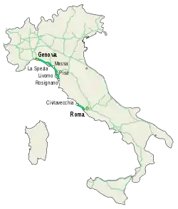 O projeto inicial pretendia ligar a cidade de Genova a Roma. No entanto, o trecho que falta para a conclusão nunca foi completamente executado, por causa dos impactos ambientais negativos que causaria sua construção. Existe, no entanto, uma estrada entre Rosignano Marittimo e Grosseto, mas a conexão entre Grosseto e Civitavecchia somente é feita por uma estrada muito menor e com velocidade máxima reduzida.