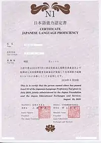 | Certificado de Proficiência obtido por passar no Nível N1 em 2010. | |