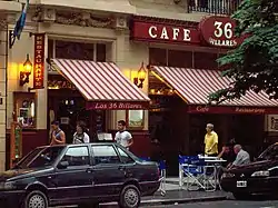 Vários cafés utilizaram a denominação Los 36 Billares. Um deles se encontra atualmente y desde 1894 dentro de um edifício de várias plantas no nº 1265, obra dos arquitetos Tiphaine e Colmegna. Foi pioneiro em ter mesas de bilhar em suas instalações, que todavia possui em seu subsolo. Granito rojo combinado com outro más claro, debaixo das grandes janelas, reviste atualmente sua frente, iluminado por três faróis. El salão com piso granítico vermelho tem uma boiserie com cachos de uvas incrustado.