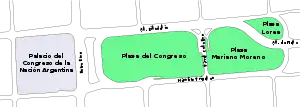 Em 1909 o Congresso da Nação se trasladou para a imponente estrutura que se levanta sobre a magnífica Plaza do Congresso, para o extremo oeste da avenida, o que serviu para equilibrar artisticamente a Praça de Maio, lugar frente ao qual o Congresso teve sua sede.