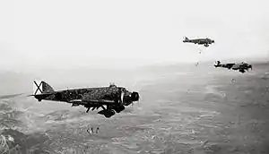 ![]() Um grupo de Savoia-Marchetti SM.81 durante uma missão de bombardeio. | |