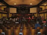 | Os seminaristas do Seminário Teológico de Virgínia lideram o Serviço de Convênio de Wesley em resposta ao avivamento. Estudantes da Universidade de Cedarville realizam um culto de adoração em resposta ao avivamento.[15][31] | O evento foi organizado pela Sociedade Metodista da Igreja Episcopal, de acordo com um anúncio no Twitter.[32]