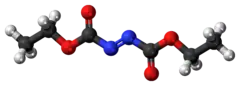 Azodicarboxilato de dietilo, abreviado na literatura como DEAD (do inglês diethyl azodicarboxylate, e algumas vezes como DEADCAT),[4][5] é um composto orgânico com a fórmula estrutural CH3CH2O2CN=NCO2CH2CH3. Sua estrutura molecular consiste em um grupo funcional azo central, RN=NR, flanqueado por dois grupos etil éster. Este líquido laranja a avermelhado é um reagente valioso, mas também bastante perigoso e explode com aquecimento. Por conseguinte, o transporte comercial de azodicarboxilato de dietilo puro é proibido nos Estados Unidos e é realizado em solução ou em armazenamento com partículas de poliestireno.
