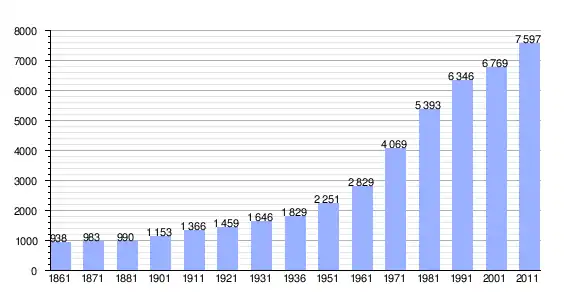 | Variação demográfica do município entre 1861 e 2011[3] |
