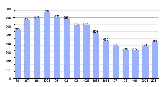 | Variação demográfica do município entre 1861 e 2011[3] |