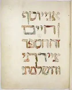| “ | ... [José ibne Haim] prefere empregar normalmente elementos decorativos —desenhos de intricado entrelaçamento, nos que segue um tradição secular que se remonta a começos da Idade Média, grotescos, dragões, e bestas mitológicas, e muitas outras coisas pelo estilo. Tem uma grande habilidade para representar animais, especialmente passáros, nos quais mostra também um grandre amor por eles. Tem também uma série de coisas de grande entretimento, como o urso festivo tocando uma gaita, ou o ataque pelos gatos armados a um castelo defendido por ratos. En geral tem muito pouco sabor judeu neste trabralho, que é uma misturas, totalmente individual, de elementos góticos, renacentistas e mouriscos, especialmente notável pela riqueza de imagens e pela execução meticulosa. | ” |