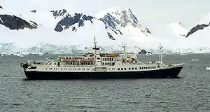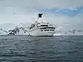 O National Geographic Endeavour passando pela Baía Paraíso em fevereiro de 2001