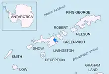 Localização da Baía da Lua, ilha de Livinston, nas ilhas Chetland do Sul .