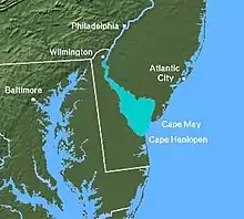 Os dois cabos (os Delaware Capes) que marcam a fronteira com o oceano são o cabo Henlopen e o cabo May.