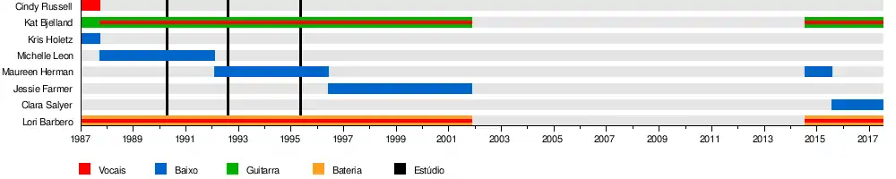 - Lori Barbero – bateria, vocal de apoio (1987–2001, 2014–presente)