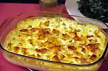 O bacalhau com natas é uma forma popular de cozinhar o bacalhau salgado em Portugal.[1] Este prato consite num assado no forno de bacalhau em camadas com cebola, batata frita em cubos (ou restos de batata já cozinhada[2]) e natas, geralmente temperada com noz-moscada e pimenta branca.