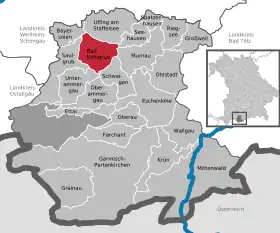 | Localização de Bad Kohlgrub no distrito de Garmisch-Partenkirchen | |