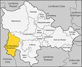 | Localização de Bad Rippoldsau-Schapbach no distrito de Freudenstadt | |