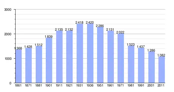 | Variação demográfica do município entre 1861 e 2011[3] |