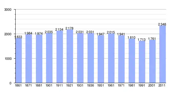 | Variação demográfica do município entre 1861 e 2011[3] |