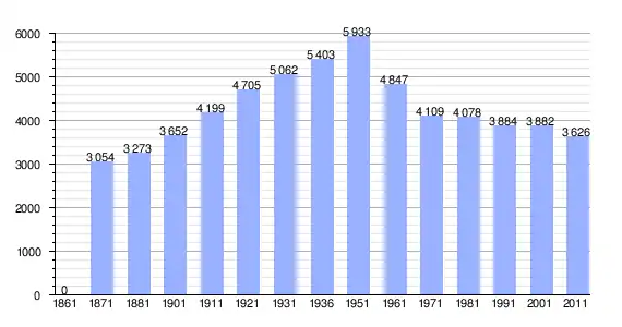 | Variação demográfica do município entre 1861 e 2011[3] |