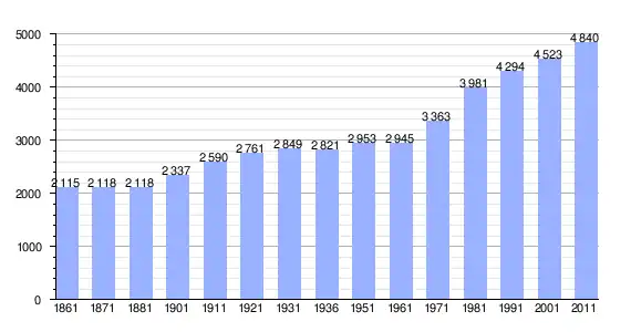 | Variação demográfica do município entre 1861 e 2011[3] |