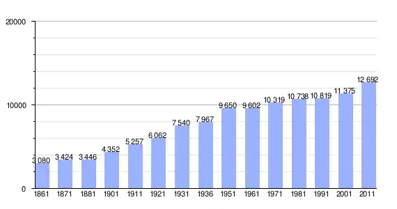 | Variação demográfica do município entre 1861 e 2011[3] |