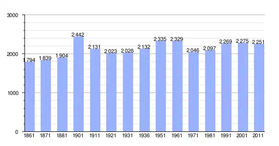 | Variação demográfica do município entre 1861 e 2011[3] |