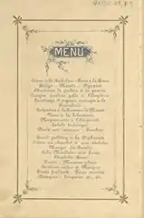 O jantar oferecido teve pratos incomuns para a época e bebidas alcoólicas importadas, dentre estes: