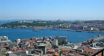 O centro urbano e histórico do lado europeu (Rumélia) é dividido pelo Corno de Ouro, um estuário orientado noroeste-sudeste que separa a chamada península histórica, onde se situava Constantinopla propriamente dita e cuja extremidade se designa Cabo do Serralho (Sarayburnu), da antiga cidade de Pera (atual Beyoğlu), uma zona com forte presença de comunidades europeias ocidentais desde os tempos bizantinos até ao início de século XX. Devido à geografia e um pouco também à história, pode falar-se em três, senão quatro, centros urbanos e históricos em Istambul: dois no lado europeu, um em cada uma das margens da extremidade do Corno de Ouro e outro aproximadamente em frente destes, no lado asiático (Anatólia) do Bósforo.[4]